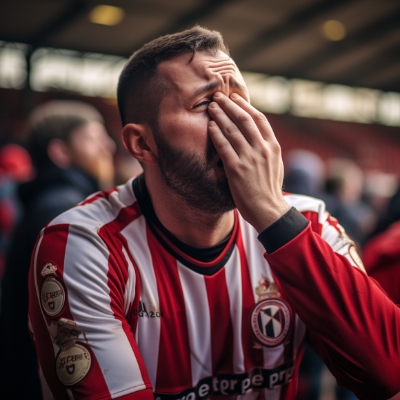 Frustrazione alle stelle tra i tifosi Wolves, penalizzati da VAR e decisioni arbitrali controverse che condizionano le partite. Il volto IA li ritrae coinvolti, delusi e amareggiati per una stagione di alti e bassi.