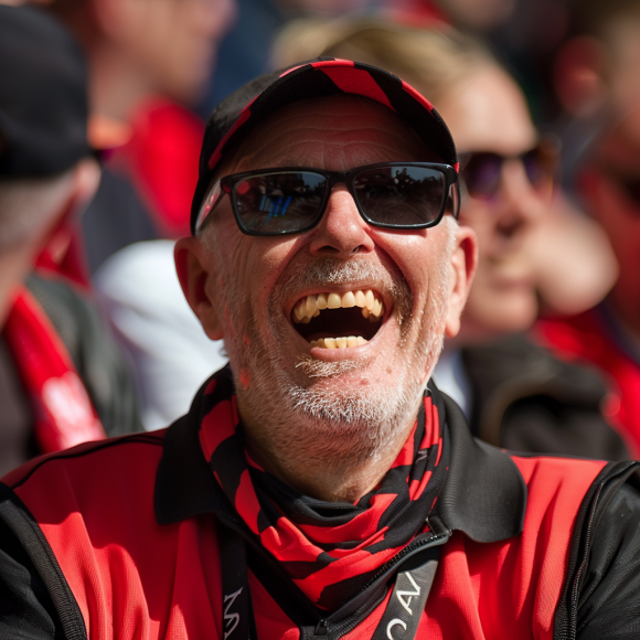 Su l’onda dell’entusiasmo! Gli Arsenal biglietti stanno volando via: la squadra è rinata e i tifosi lo dimostrano con sorrisi e orgoglio. L’immagine IA cattura un supporter sorridente, simbolo di questa nuova era.